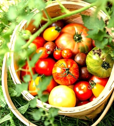 Many come straight from our own garden, where we nurture seasonal vegetables and fragrant herbs with respect for the earth. The rest come from small island farmers and local fishermen we know by name.