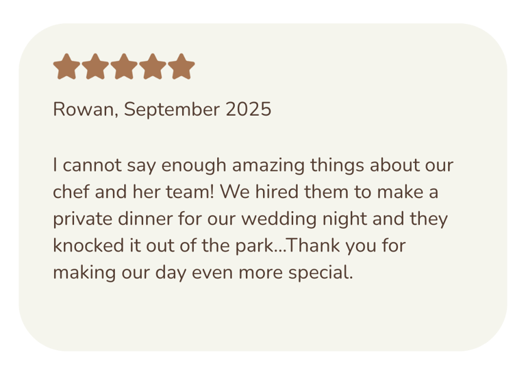 Relax as we craft and serve your meal, creating an unforgettable dining experience
