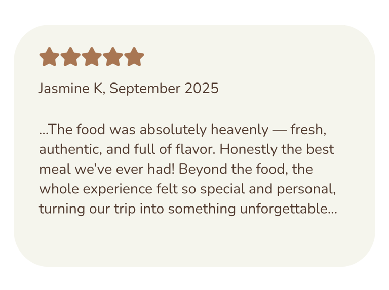 Hire a private chef and enjoy original dishes crafted with passion, honoring generations of culinary heritage.